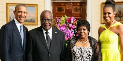 Antes de llegar a Cuba el presidente de Namibia, Hifikepunye Pohamba, visitó al presidente Obama en la Casa Blanca y el 5 de agosto pasado en la Cumbre de los Líderes de Países Africanos y los Estados Unidos, el presidente de Namibia dijo que: “Namibia esperaba trabajar con el gobierno de los Estados Unidos y los inversionistas americanos para facilitar inversiones en diferentes sectores de la economía de su país.” Foto de derecha a izquierda la primera dama de los Estados Unidos Michelle Obama, la primera dama de Namibia Penehupifo Pohamba, el presidente de Namibia Hifikepunye Pohamba y el presidente Barack Obama de los Estados Unidos.